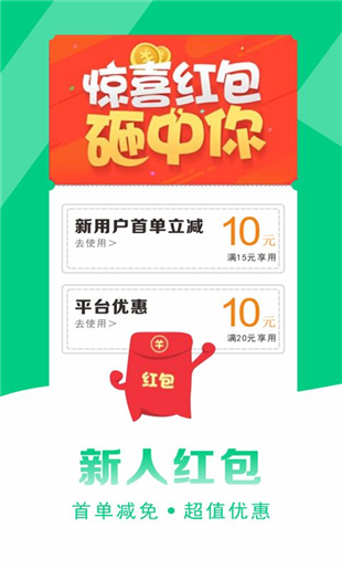 新人红包,收单减免,超值优惠不止送外卖,购物、跑腿、快递、出行