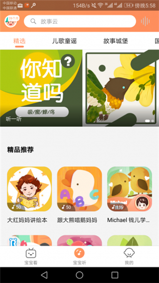 【宝宝听】:● 【儿歌童谣】:涵盖经典中英文儿歌,长久传唱的童谣