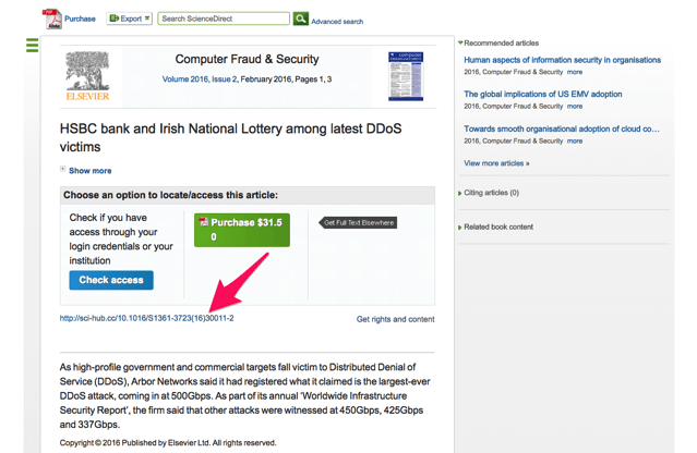 识别到网页中DOI等唯一标识,DOI原本根据http:doi.org/+doi对应跳转至全文数据库,该插件将网页中DOI链接替换为sci-hub某个域名中,用户点击DOI则直接请求至sci-hub中。