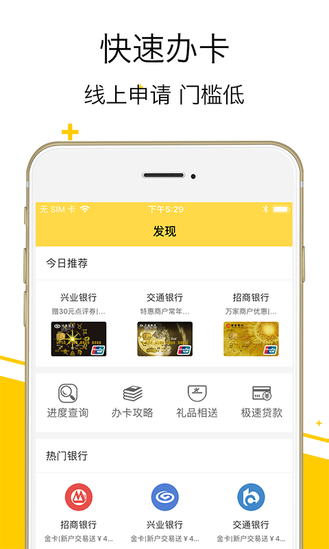 4. 极速办卡:在线银行卡办理、信用卡申请,便捷高效,还有好礼不断;