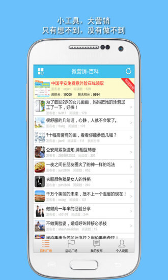 《微营销》是一款专门面向网商店主与销售人员的免费市场营销软件。借助此软件,能够在各类转发文章的末尾添加上你的广告,使营销变得更为便捷,无需担忧会被他人拉黑。
