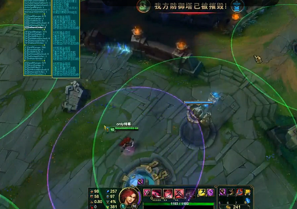 1、显示自己技能范围(GOS)说明:包含攻击距离、QWE范围2、显示敌人攻击范围(GOS)3、防御塔范围(GOS)