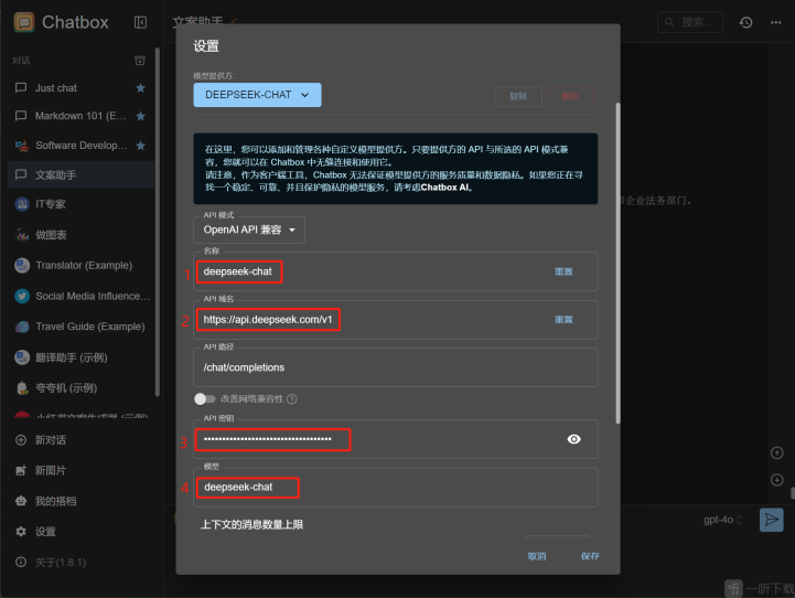 1、运用Chatbox对DeepSeek进行配置