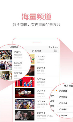 追看热门电视剧:无论韩剧、港剧、美剧、日剧还是国产电视连续剧,只要在电视台播出,都能让你更快的追看。万一错过直播,还支持三天之内的节目回放,精彩剧情一集不落。看直播 :既有中央电视台、浙江卫视、东方卫视、江苏卫视、湖南卫视等各大卫视频道的在线直播,一秒换台不卡顿,高清频道更流畅,时移回看新体验!还有CIBN轮播频道,四海钓鱼、足球、劲爆体育等多个特色频道,许多特色内容,等待着你来发掘,更有美女直播、特色轮播、特色资讯,频道共计300+。