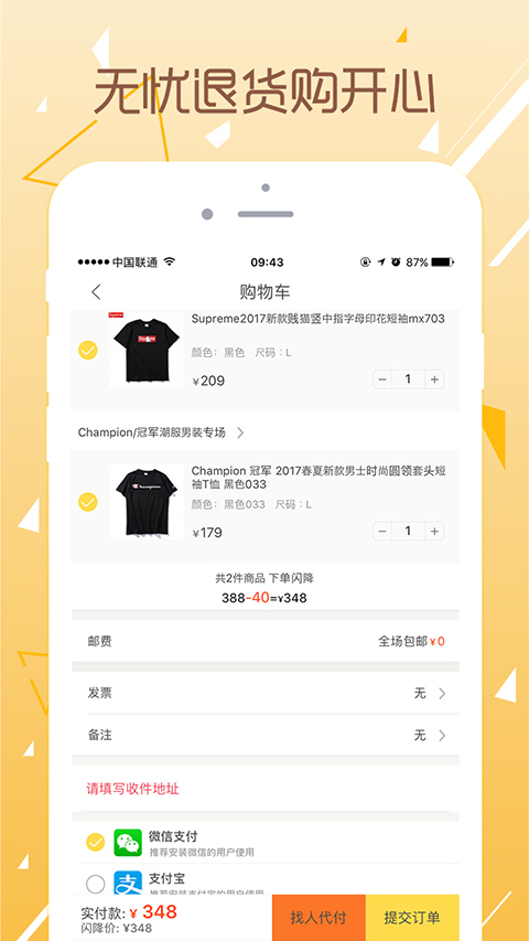 无忧退货:7天无理由退换货,下单无忧,购开心!