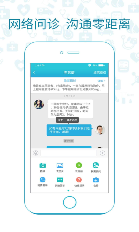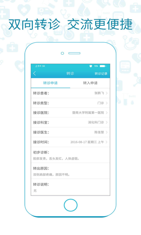 暨大医生是一款专业的移动医疗APP,是基于广州华侨医院和广州易风健康科技股份有限公司共同打造的互联网医院,依托心相随慢病管理平台,以“关爱、健康”为宗旨,建立“线上预诊-线下确诊-线下治疗-线上复诊” 全景式康复周期管理的医疗新服务模式,优化配置医院的专业资源,为患者提供专业、便捷和有效的网络问诊、健康管理等线上/线下结合的诊疗服务。暨大医生端,为医生提供了移动医护工作站,HIS系统无缝对接,真正实现了随时随地开医嘱。为患者提供全面专业的个性化诊疗服务。