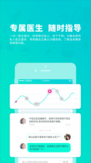 医生:一对一医生随诊,异常情况线上、线下干预。为糖友提供私人医生服务,帮助糖友自身的数据,为糖友提供定制建议。根据糖友的饮食、运动习惯,配合动态数据分析,为糖友提供4周定制饮食、运动建议。帮助糖友了解自己如何吃、如何运动。