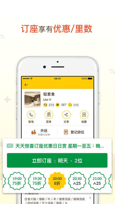 - 根据所在位置,即时提供附近有位可订的餐厅及优惠