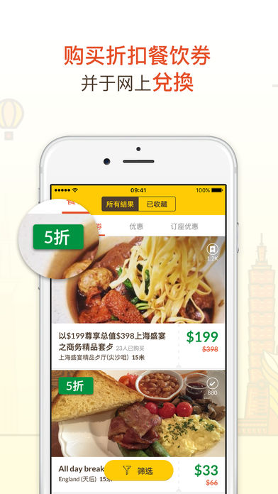 - 搜寻结果以多角度排序,提供全新筛选介面,因应个人喜好依评分、最多收藏、价钱及距离排列