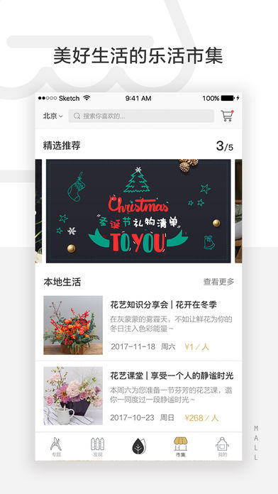 1,商城全名升级为“市集”:直接可购买原产地直采鲜花,参与本地花艺活动