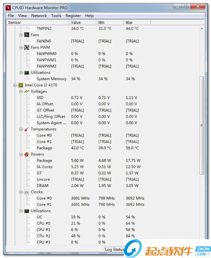 4、那这时HWMonitor就可以发挥它的作用了。通过它你可以实时查看到硬件的最真实情况,此外软件的系统资源占用率非常的低,丝毫不影响你的计算机正常使用;