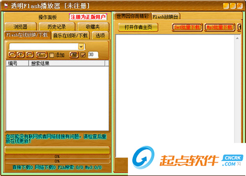 1、在线搜索、播放、保存功能;内置Flash批量下载器和单个网页媒体下载器(可以搜索下载网页中的SWF/Avi/RM/Mp3以及常用图像格式)2、屏保制作工具(可制作透明屏保)