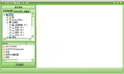 1、轻松Flash播放器绿色版无需安装,点击“QSplayer.exe”即可启动程序。2、在左侧中选择需要导入的flash格式文件,双击运行即可。