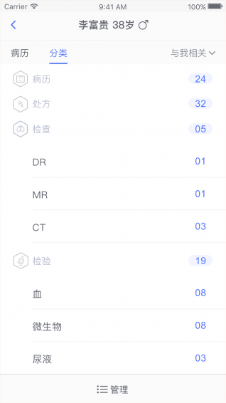 病历浏览:支持按照患者就诊时间线和报告类型两种方式进行浏览,可按多维度进行筛选。