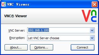 (2) VNC Server 传送一对话窗口至客户端,要求输入连接密码(可能为空),以及存取的 VNC Server 显示装置。