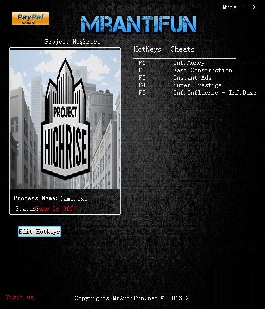 大厦管理者六项修改器下载 v1.0.1 MrAntiFun版 大厦管理者六项修改器是专为《大厦管理者》游戏玩家们所提供的游戏修改工具。该工具拥有无限金钱、即时广告、超级声誉、无限势力、无限电话、即时建设等六项功能,有需的玩家自行下载。