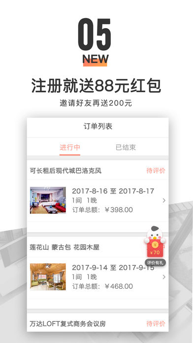 海量房源任你选:396座城市,30万套特色房源,热门旅游城市全覆盖。周末游周边游住宿预订首选。一键定位找身边:一键发现附近房源,方便快捷,房源真实可靠。订房从未如此简单。