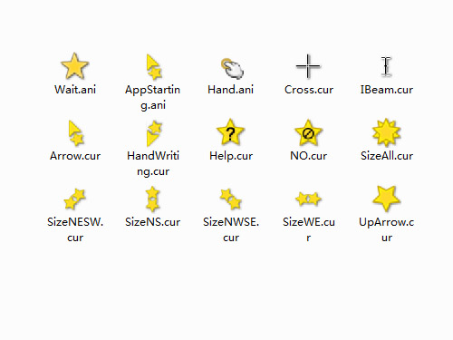stars-gold-set鼠标指针是包含15个基本指针的鼠标指针文件,风格华丽,制作精美,星星造型十分可爱,可用于搭配多种主题。