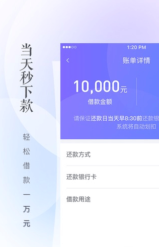 1.放款快:1分钟快速申请,审核通过当天放款,借贷就这么容易。2.超低月息:综合比较为你推荐最优贷款方案,每月享超低月息,借贷无压力。