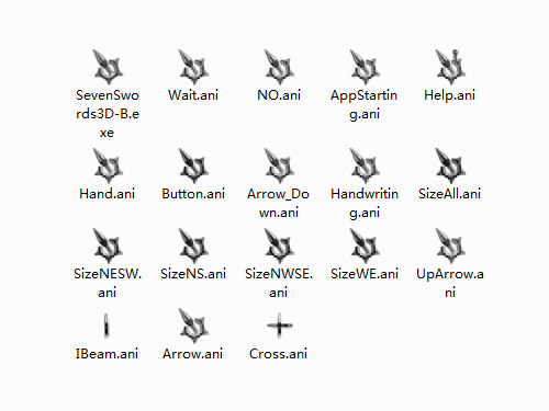 sevenswords3d-b鼠标指针是包含18个基本指针的鼠标指针文件,质感细腻,风格简洁,造型独特,可用于搭配多种主题