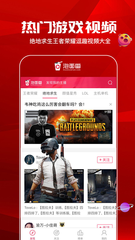 泡面番是一个集电竞、娱乐等主播直播短视频的精选平台,也是一个让你近距离接触主播的发现主播社区;你喜欢的主播都在这里!泡面番短片一分钟,浓缩直播一小时。