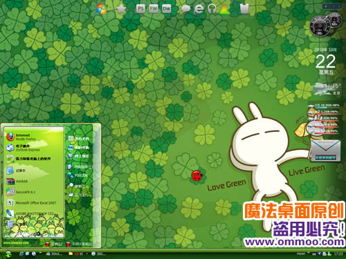魔法桌面原创兔斯基电脑桌面主题,壁纸清新淡雅,以绿色为主,在主题制作上也表现出兔斯基可爱与搞笑的风格。每个人都是一个兔斯基,眯着可爱的眼睛、想着扭动两根面条般的手臂、做各种可爱的动作,魔法桌面愿每位魔丝都能做一个快乐的兔斯基。
