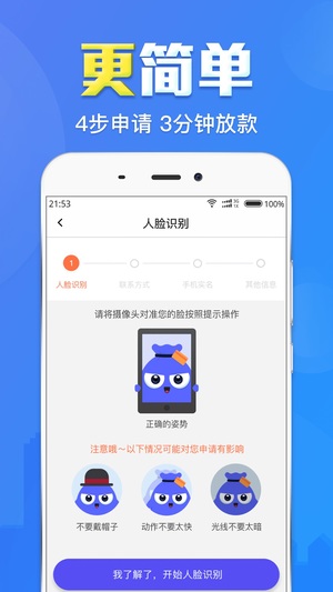 5.只要您年满18(非学生),拿起手机、身份证、绑定银行卡即可借款,全线上易操作。