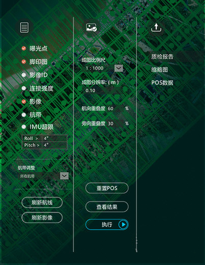 “智检图”是专业用于航飞质量现场检查及评估的自动化软件,可以快速获取航飞质量报告,提高无人机数据质检工序的效率及后期处理可靠性。