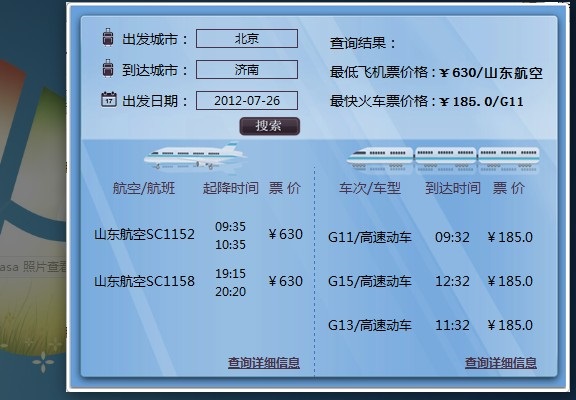 2、此外,如果您需要查询更多机票、火车票信息,票务通在界面下端留有第三方数据信息的链接,轻松点击,全部票务信息即可一览无余。