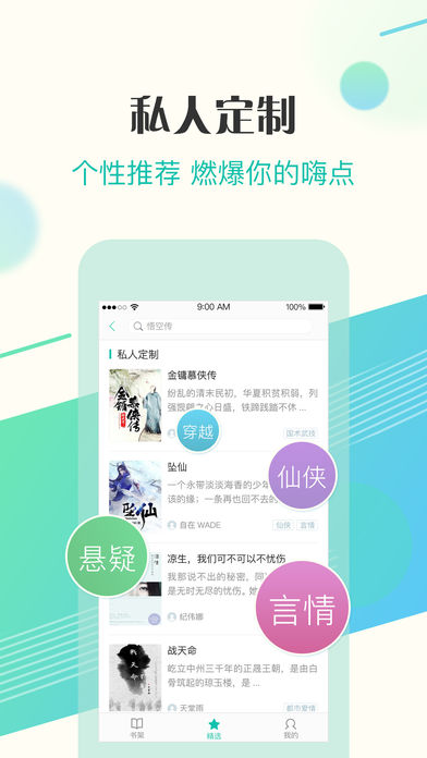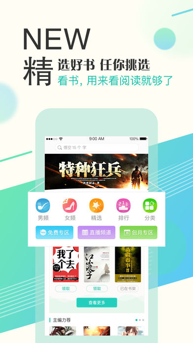 【海量小说】悬疑、恐怖、言情、都市、玄幻、军事、历史等精品热门小说汇聚于此,囊括当下热门分类小说随心阅读;【独立频道】男生原创、女生原创、出版图书,独立频道,独立体验;