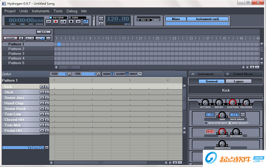 1、基于模式的音序器,具有无限数量的模式和将模式链接到歌曲中的能力。