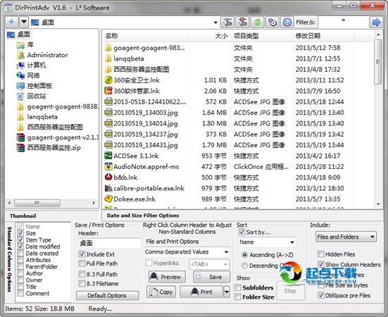 打印文件目录列表(DirPrintAdv)是一个可以打印文件夹列表的软件。如果你有很多的文件资料在一个文件夹中,这将是你整理文件的好帮手。