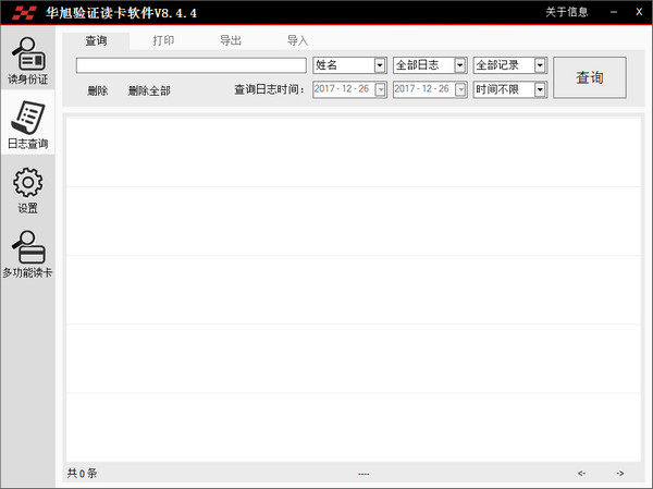 华旭验证读卡软件下载 v8.4.4 免费版 华旭验证读卡软件是一款小巧绿色的身份证读取识别软件。该软件界面清爽简约,功能强大好用,可支持身份证读取、日志查询、多功能读卡等功能,有需自取。
