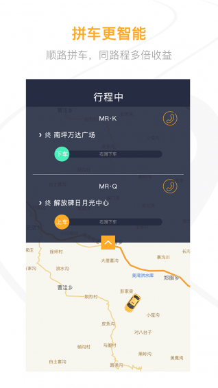 接单畅通:一分钟了解用户上下车地点,抢单后马上致电,沟通无障碍。