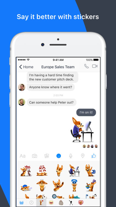 Work Chat app为使用Workplace for的公司全公司上下提供消息、语音和视频通话功能。Work Chat app不仅仅支持单人聊天或群聊,Work Chat app最大的功能是能够让你与团队成员保持沟通。Work Chat app可以随时查看同事联系名单、随时通话或发消息,瞬间传达。Work Chat app还有类似国内钉钉的功能,可以钉一下联系人通知由你控制,Work Chat app不用担心被打扰。