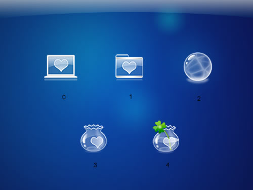 tmbo桌面图标是内含5个基本图标的icl类型图标文件,白色图标晶莹剔透,时尚大方,可用于搭配多种主题。