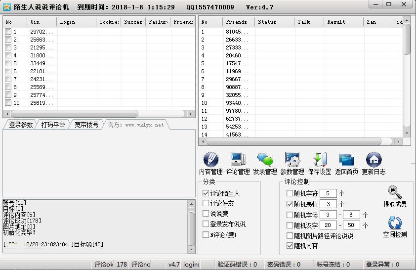 陌生人说说评论机,支持说说带图发表,支持评论前点赞,支持说说内容显示图片数字,可评论陌生人空间说说(前提是空间可以访问)【软件特点】