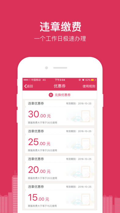 违章缴费,支持多种支付方式,极速办理不拖沓!还有大波优惠券哦。