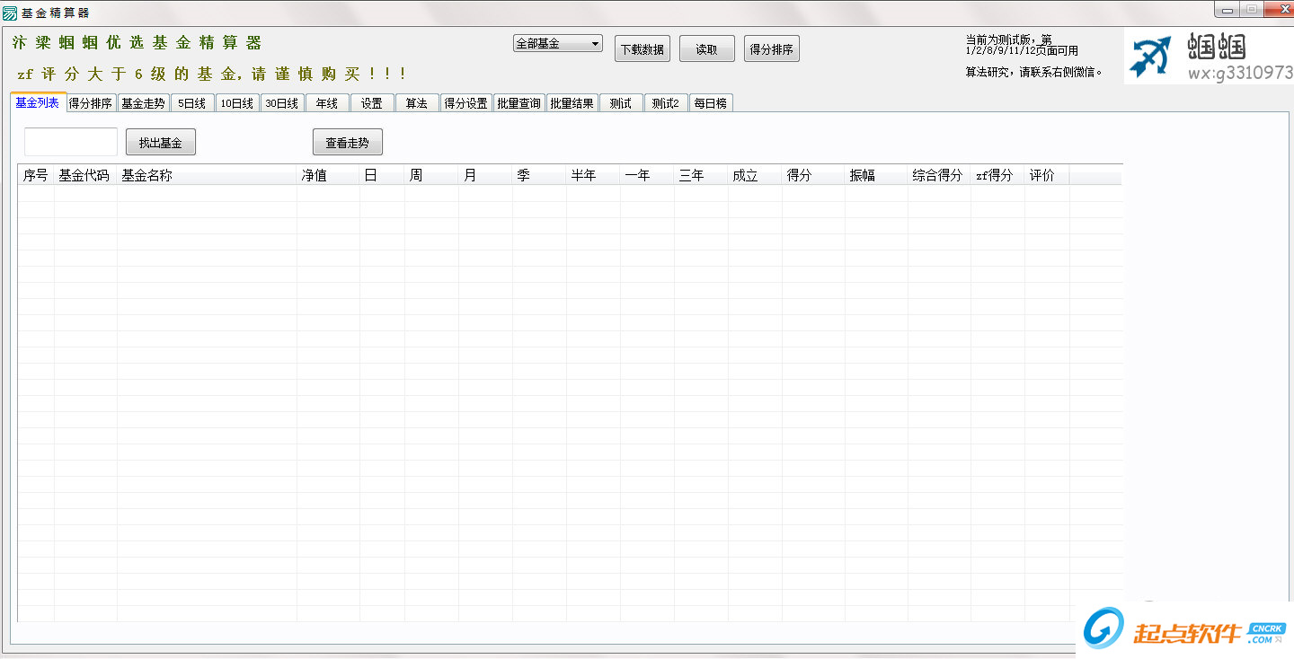 1、点击下载数据 。(全网的基金数据,每日更新)——读取按键是当日第二次以后可以用。当日第一次使用,必须下载数据,否则用的是老数据。2、点击得分排序。(默认按照综合评分排序)