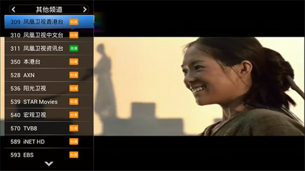 播放画面全屏时,使用遥控器上下键实现前后频道切换;菜单键实现播放设置: