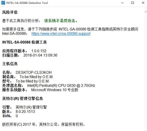 英特尔发布的检测工具只能帮你检测设备是否受到漏洞的影响,但该工具并不能帮你直接更新或者修复漏洞。目前该公司已经将相关的技术细节披露给主板制造商,因此用户需要等待主板制造商发布新版驱动才可修复。