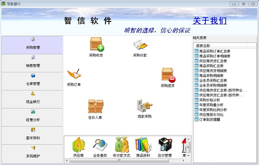 智信鞋业进销存软件是一款专业较成熟的批发/零售专业软件,软件专业针对鞋业销售行业打造的进销存软件,采用先进数据库系统MYSQL,具有数据存储量大、速度快的特点。系统集合采购管理、销售管理、仓库管理、现金银行、经营分析、基本资料、系统维护于一体。【软件功能】