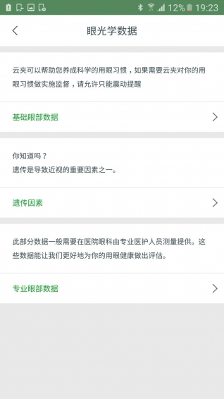 云夹APP基于专业的医学临床试验数据和学术研究成果,独创性地在云端建立用眼大数据模型,向每位用户提供定制化的护眼训练方案,全面呵护青少年的用眼健康。主要功能,云夹APP可以: