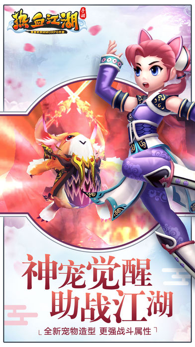 热血江湖手游是由官方唯一正版授权,龙图游戏发行青春武侠MMORPG手游。清新明亮的游戏场景,活泼可爱的人物造型,风趣幽默的游戏剧情,构建出一个轻松愉快的江湖世界。游戏完美复刻端游职业、地图、宠物、武器、宝石等一系列经典内容,更有百套披风时装,让江湖儿女尽显个性风采,丰富的社交玩法成就侠侣情缘,上演盛世古典婚礼羡煞武林。玩家还将体验到正邪转职双线成长的乐趣,自创武功独步江湖的畅爽,野外自由PK的快意恩仇,以及正邪势力跨服对决带来的激情战斗!让我们携手挚友,快乐仗剑,情暖江湖!【游戏特色】