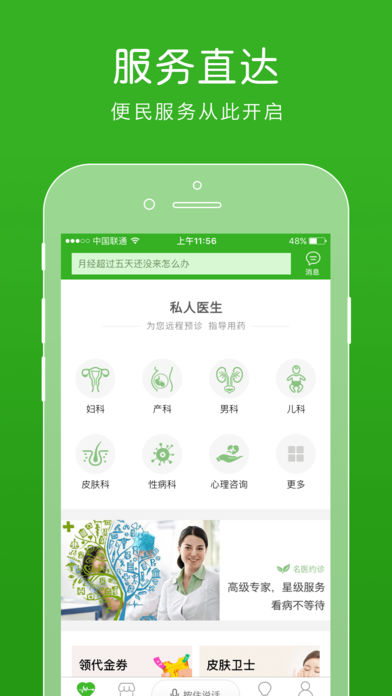 ---让你足不出户,手机问诊,随时随地安静的做个健康的美少女、美男子。