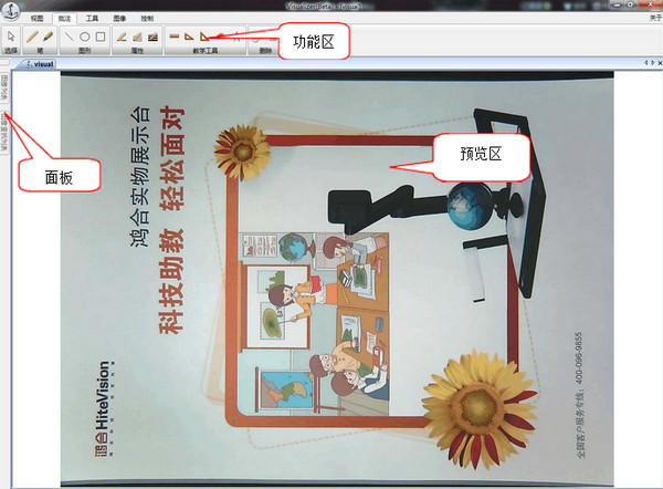 HiteView-鸿合图像采集处理软件界面风格类似于OfficeRibbon,分为功能区、面板、预览区等部分【更新日志】