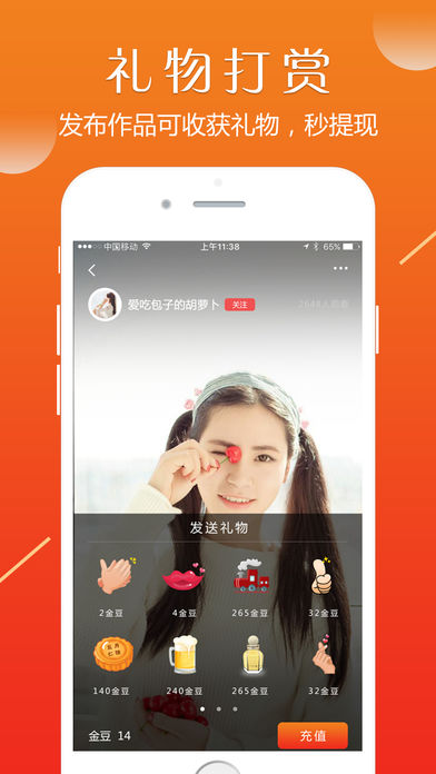 礼物:在简色你可以收获粉丝带来的海量礼物,礼物还可提现哦~