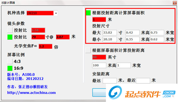 1、下载双击“PJ计算器.exe”打开软件,直接运行即可;2、选择投影机型号,设置镜头参数,可以采用两种方式确定: