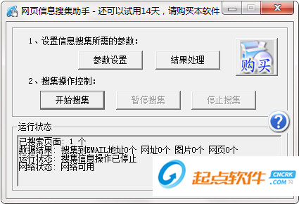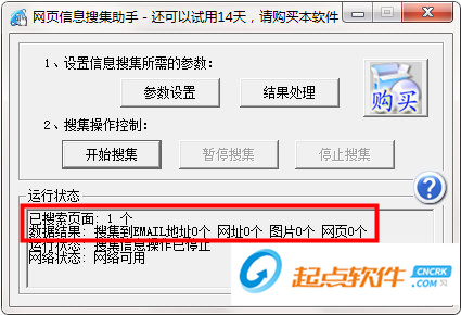 第八步:点击“开始搜集”按钮即可进行搜集工作,运行状态栏中会显示运行状况及结果数量等信息。
