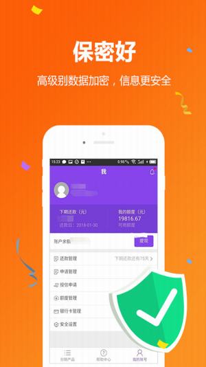 1.提供额度为500-2000元不等,7天/14天的资金借款服务。2.无抵押、无担保、纯信用、无前期费用,全程线上操作,保护隐私,放款安全。